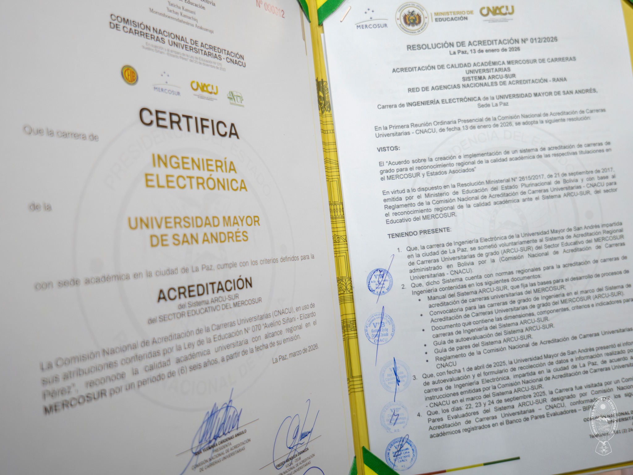 La Universidad Mayor de San Andrés (UMSA) obtuvo la reacreditación regional de tres carreras de la Facultad de Ingeniería en el Sistema de Acreditación Regional de Carreras Universitarias (ARCU-SUR) del Sector Educativo del #MERCOSUR, reconocimiento que certifica el cumplimiento de estándares internacionales de calidad académica.